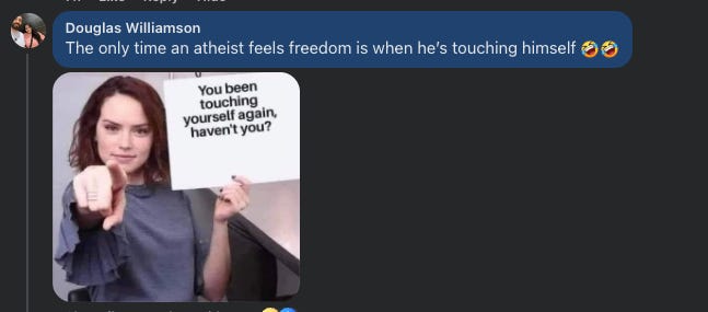 There’s so much projection from these people. They can’t fathom a world where godless people are happy.